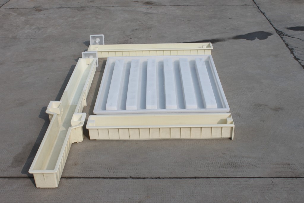 而其中采用PP聚丙烯材質的,則是水泥圍欄塑料模具中的欄片模具,7幅設計,尺寸為149.5*140.5*9cm,PP聚丙烯具備非常高的韌性,針對大面積施工的水泥制品模具有著相當好處,特別牢固且不易碎。缺點則是儲存不當容易造成水泥模具變形,而造成模具報廢,所以在儲存過程中一定要整齊疊放于平地。