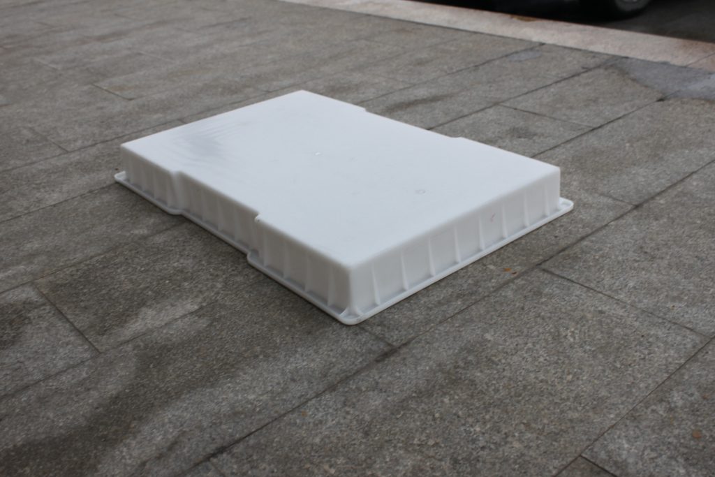 此款平緣石模具主要采用了聚丙烯塑料原料,經過高溫注塑工藝加工而成,較大的長寬尺寸比較適合水溝蓋板鋪設,在塑料平緣石模具兩端分別以缺口設計,方便水泥平緣石成品施工鋪設及后期檢查挪移。