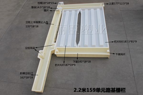 2.鐵路防護柵欄模具上下梁,均采用ABS材質,上梁尺寸為177*12.5*18CM,下梁尺寸為141*18*18CM,及配備下梁悶片。