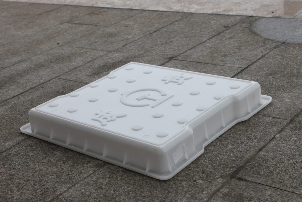 成貴高速鐵路專用的一款塑料水泥蓋板模具,采用的是全新聚丙烯塑料材質。主要是設計樣式以圓點防滑及鐵路圖標、“成貴”字樣圖案,在圓點水泥蓋板模具的2條長邊上各有20厘米長度的內凹缺口設計,實際澆筑成型水泥蓋板雙邊缺口,在實際鋪設工作中更易工人搬運及日后溝槽維護也更為方便,更具人性化。