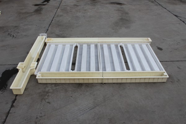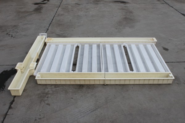 護欄欄片模具在高速路基護欄模具里面設置了4片式設計,水泥欄片成型為4+3+3+4的組合模具,尺寸分別為149.5*81*9cm2片,149.5*59*9cm2片。在使用整個路基護欄模具澆筑水泥制品過程中,水泥欄片模具為使用率相對較高的模具,采用PP聚丙烯原料更好的韌性可以更好的提高模具的使用次數(shù)。
